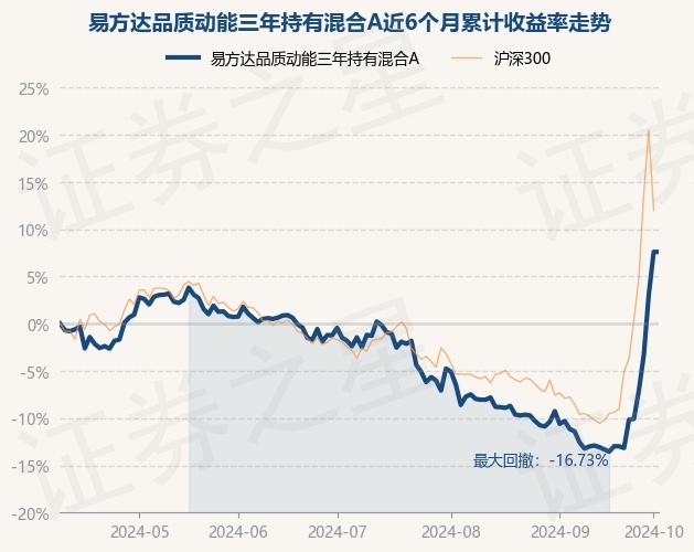 证券之星消息,10月9日,易方达品质动能三年持有混合A最新单位净值为0.8254元,累计净值为0.8254元,较前一交易日上涨0.0%。历史数据显示该基金近1个月上涨18.1%,近3个月上涨3.72%,近6个月上涨2.48%,近1年下跌3.16%。该基金近6个月的累计收益率走势如下图: