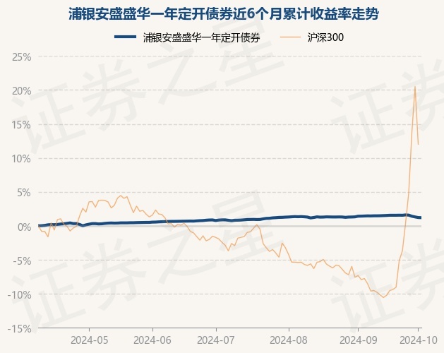 证券之星消息,10月9日,浦银安盛盛华一年定开债券最新单位净值为1.0329元,累计净值为1.1149元,较前一交易日下跌0.02%。历史数据显示该基金近1个月下跌0.27%,近3个月上涨0.38%,近6个月上涨1.21%,近1年上涨3.42%。该基金近6个月的累计收益率走势如下图: