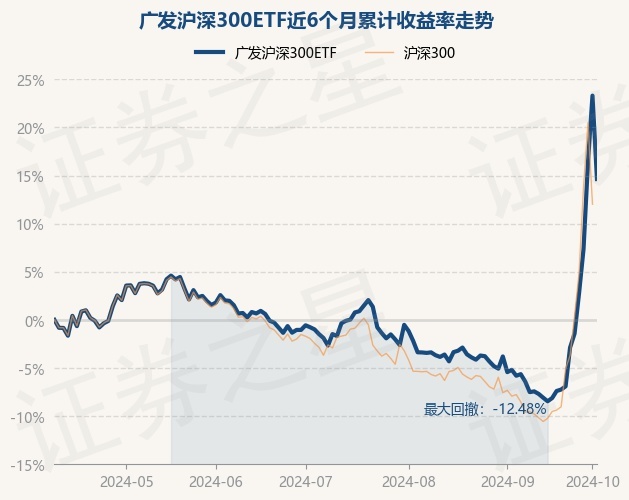 证券之星消息,10月9日,广发沪深300ETF最新单位净值为1.4681元,累计净值为1.4681元,较前一交易日下跌7.03%。历史数据显示该基金近1个月上涨23.93%,近3个月上涨16.35%,近6个月上涨14.63%,近1年上涨9.99%。该基金近6个月的累计收益率走势如下图: