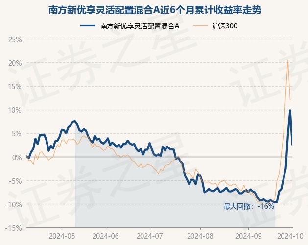 证券之星消息,10月9日,南方新优享灵活配置混合A最新单位净值为3.2062元,累计净值为3.2062元,较前一交易日下跌6.53%。历史数据显示该基金近1个月上涨13.07%,近3个月上涨0.51%,近6个月上涨2.66%,近1年上涨6.17%。该基金近6个月的累计收益率走势如下图: