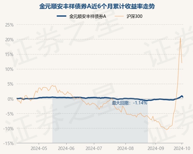 证券之星消息,10月9日,金元顺安丰祥债券A最新单位净值为1.0936元,累计净值为1.5406元,较前一交易日下跌0.42%。历史数据显示该基金近1个月上涨0.75%,近3个月上涨0.23%,近6个月上涨0.48%,近1年上涨2.07%。该基金近6个月的累计收益率走势如下图: