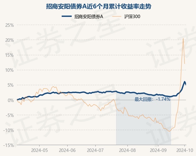 证券之星消息,10月9日,招商安阳债券A最新单位净值为1.0557元,累计净值为1.2528元,较前一交易日下跌0.91%。历史数据显示该基金近1个月上涨3.77%,近3个月上涨2.48%,近6个月上涨5.08%,近1年上涨8.78%。该基金近6个月的累计收益率走势如下图: