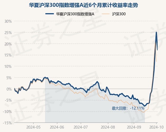 证券之星消息,10月9日,华夏沪深300指数增强A最新单位净值为1.843元,累计净值为1.843元,较前一交易日下跌6.21%。历史数据显示该基金近1个月上涨25.46%,近3个月上涨17.54%,近6个月上涨17.24%,近1年上涨11.7%。该基金近6个月的累计收益率走势如下图: