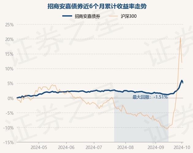 证券之星消息,10月9日,招商安嘉债券最新单位净值为1.0435元,累计净值为1.1601元,较前一交易日下跌0.77%。历史数据显示该基金近1个月上涨3.77%,近3个月上涨2.66%,近6个月上涨5.1%,近1年上涨8.49%。该基金近6个月的累计收益率走势如下图: