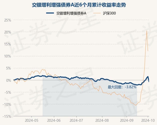 证券之星消息,10月9日,交银增利增强债券A最新单位净值为1.1807元,累计净值为1.5587元,较前一交易日下跌2.03%。历史数据显示该基金近1个月上涨0.9%,近3个月下跌1.49%,近6个月下跌0.64%,近1年下跌0.2%。该基金近6个月的累计收益率走势如下图: