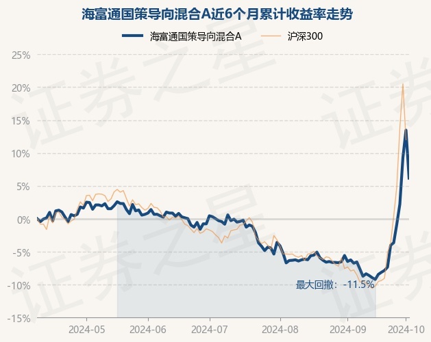 证券之星消息,10月9日,海富通国策导向混合A最新单位净值为1.8584元,累计净值为2.8975元,较前一交易日下跌6.42%。历史数据显示该基金近1个月上涨16.32%,近3个月上涨5.54%,近6个月上涨6.18%,近1年上涨5.68%。该基金近6个月的累计收益率走势如下图: