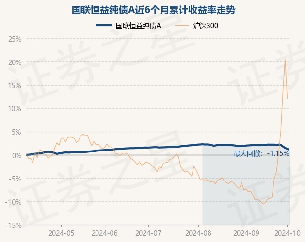 证券之星消息,10月9日,国联恒益纯债A最新单位净值为1.0771元,累计净值为1.1121元,较前一交易日下跌0.18%。历史数据显示该基金近1个月下跌0.97%,近3个月下跌0.49%,近6个月上涨1.1%,近1年上涨5.23%。该基金近6个月的累计收益率走势如下图: