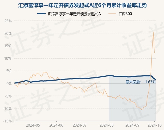 证券之星消息,10月9日,汇添富淳享一年定开债券发起式A最新单位净值为1.0272元,累计净值为1.0828元,较前一交易日下跌0.4%。历史数据显示该基金近1个月下跌1.44%,近3个月下跌0.53%,近6个月上涨1.36%,近1年上涨5.3%。该基金近6个月的累计收益率走势如下图: