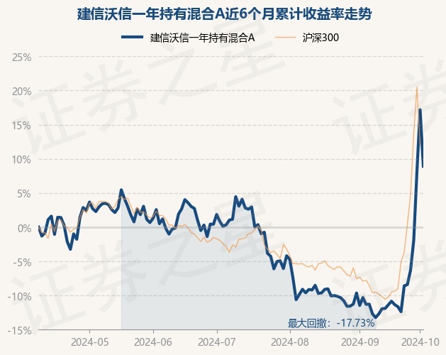 证券之星消息,10月9日,建信沃信一年持有混合A最新单位净值为0.7176元,累计净值为0.7176元,较前一交易日下跌7.06%。历史数据显示该基金近1个月上涨25.52%,近3个月上涨4.26%,近6个月上涨8.91%,近1年上涨3.22%。该基金近6个月的累计收益率走势如下图:
