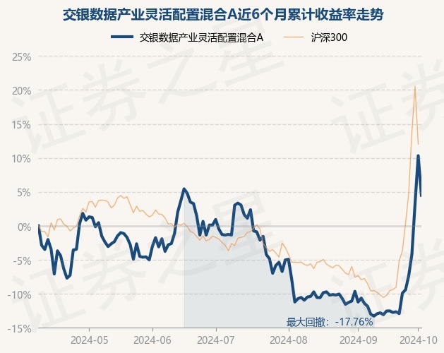 证券之星消息,10月9日,交银数据产业灵活配置混合A最新单位净值为1.6725元,累计净值为1.6725元,较前一交易日下跌5.28%。历史数据显示该基金近1个月上涨20.51%,近3个月上涨1.41%,近6个月上涨4.5%,近1年下跌4.72%。该基金近6个月的累计收益率走势如下图: