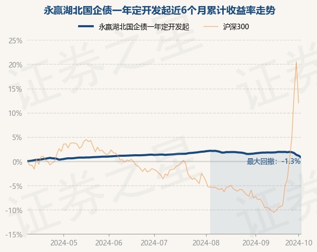 证券之星消息,10月9日,永赢湖北国企债一年定开发起最新单位净值为1.0427元,累计净值为1.058元,较前一交易日下跌0.32%。历史数据显示该基金近1个月下跌0.96%,近3个月下跌0.52%,近6个月上涨0.83%,近1年上涨3.8%。该基金近6个月的累计收益率走势如下图: