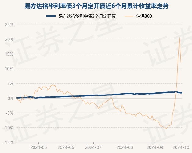 证券之星消息,10月9日,易方达裕华利率债3个月定开债最新单位净值为1.0158元,累计净值为1.0925元,较前一交易日上涨0.03%。历史数据显示该基金近1个月上涨0.02%,近3个月上涨1.85%,近6个月上涨1.72%,近1年上涨4.12%。该基金近6个月的累计收益率走势如下图: