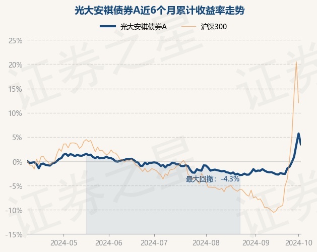 证券之星消息,10月9日,光大安祺债券A最新单位净值为1.2434元,累计净值为1.2941元,较前一交易日下跌2.11%。历史数据显示该基金近1个月上涨5.8%,近3个月上涨4.3%,近6个月上涨3.49%,近1年上涨3.44%。该基金近6个月的累计收益率走势如下图: