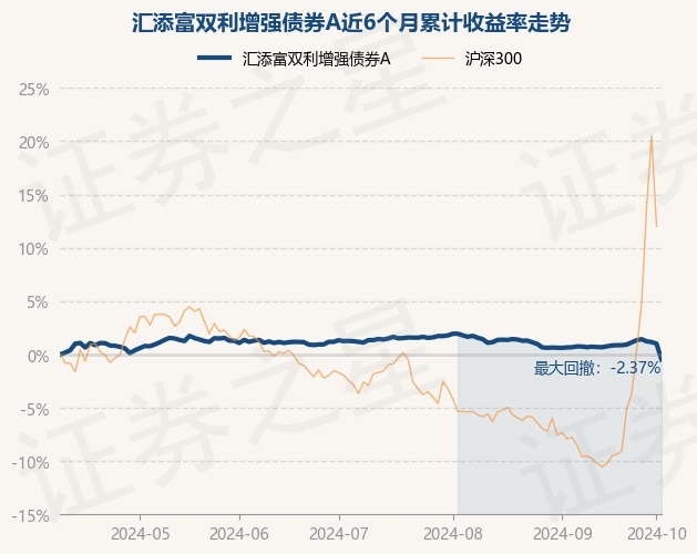 证券之星消息,10月9日,汇添富双利增强债券A最新单位净值为1.0443元,累计净值为1.4956元,较前一交易日下跌1.46%。历史数据显示该基金近1个月下跌1.14%,近3个月下跌1.79%,近6个月下跌0.47%,近1年上涨0.12%。该基金近6个月的累计收益率走势如下图: