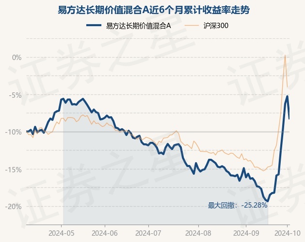 证券之星消息,10月9日,易方达长期价值混合A最新单位净值为0.91元,累计净值为0.91元,较前一交易日下跌5.42%。历史数据显示该基金近1个月上涨21.33%,近3个月上涨9.72%,近6个月上涨3.54%,近1年上涨2.93%。该基金近6个月的累计收益率走势如下图: