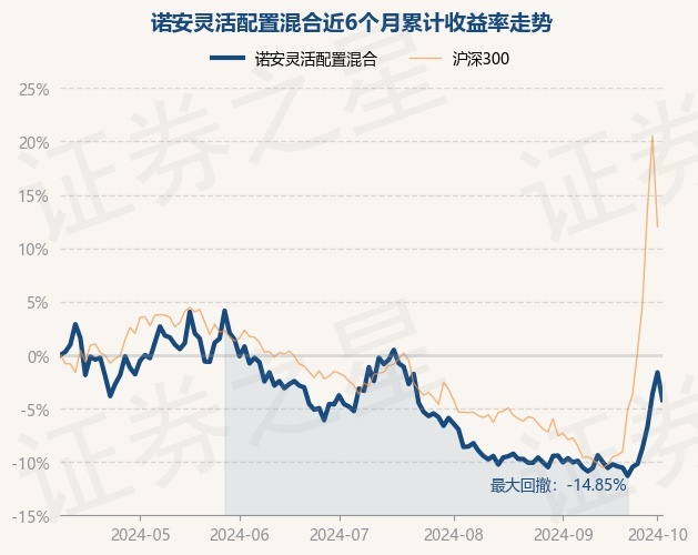 证券之星消息,10月9日,诺安灵活配置混合最新单位净值为2.72元,累计净值为3.3元,较前一交易日下跌2.61%。历史数据显示该基金近1个月上涨7.51%,近3个月下跌3.1%,近6个月下跌4.19%,近1年下跌4.43%。该基金近6个月的累计收益率走势如下图: