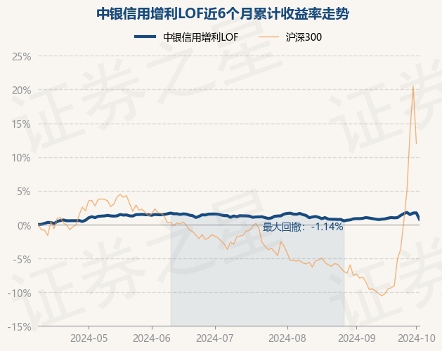 证券之星消息,10月9日,中银信用增利LOF最新单位净值为1.0934元,累计净值为1.7471元,较前一交易日下跌0.92%。历史数据显示该基金近1个月下跌0.09%,近3个月下跌0.47%,近6个月上涨0.79%,近1年上涨3.54%。该基金近6个月的累计收益率走势如下图: