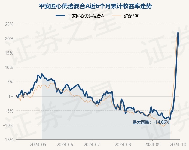 证券之星消息,10月9日,平安匠心优选混合A最新单位净值为0.9851元,累计净值为1.2221元,较前一交易日下跌4.25%。历史数据显示该基金近1个月上涨25.36%,近3个月上涨18.54%,近6个月上涨16.94%,近1年上涨5.54%。该基金近6个月的累计收益率走势如下图: