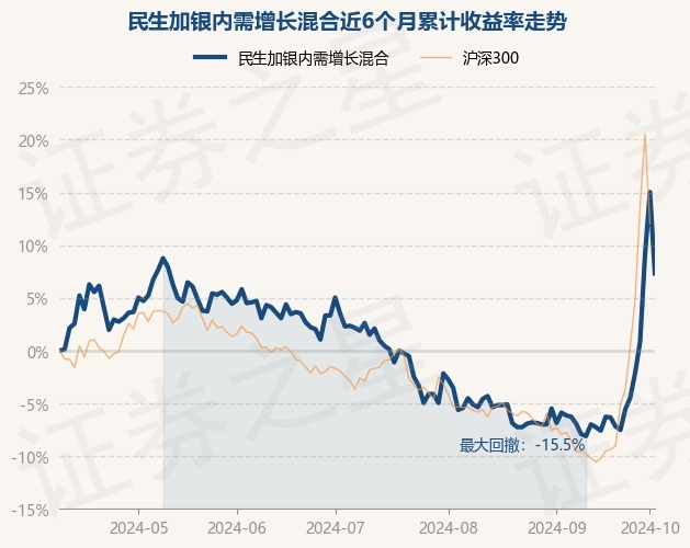 证券之星消息,10月9日,民生加银内需增长混合最新单位净值为1.642元,累计净值为2.776元,较前一交易日下跌6.7%。历史数据显示该基金近1个月上涨16.54%,近3个月上涨4.59%,近6个月上涨7.32%,近1年上涨14.77%。该基金近6个月的累计收益率走势如下图: