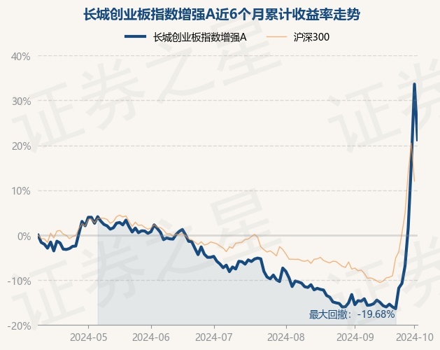 证券之星消息,10月9日,长城创业板指数增强A最新单位净值为1.6723元,累计净值为1.6723元,较前一交易日下跌9.28%。历史数据显示该基金近1个月上涨43.55%,近3个月上涨30.49%,近6个月上涨21.24%,近1年上涨8.5%。该基金近6个月的累计收益率走势如下图: