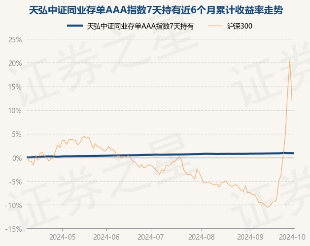 证券之星消息,10月9日,天弘中证同业存单AAA指数7天持有最新单位净值为1.0398元,累计净值为1.0398元,较前一交易日下跌0.04%。历史数据显示该基金近1个月上涨0.06%,近3个月上涨0.29%,近6个月上涨0.86%,近1年上涨2.33%。该基金近6个月的累计收益率走势如下图: