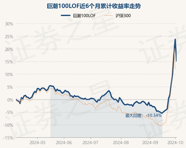 证券之星消息,10月9日,巨潮100LOF最新单位净值为0.993元,累计净值为3.168元,较前一交易日下跌6.94%。历史数据显示该基金近1个月上涨20.8%,近3个月上涨15.33%,近6个月上涨15.2%,近1年上涨11.82%。该基金近6个月的累计收益率走势如下图:
