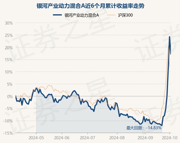 证券之星消息,10月9日,银河产业动力混合A最新单位净值为0.8269元,累计净值为0.8269元,较前一交易日下跌5.62%。历史数据显示该基金近1个月上涨32.39%,近3个月上涨22.05%,近6个月上涨17.27%,近1年上涨1.81%。该基金近6个月的累计收益率走势如下图: