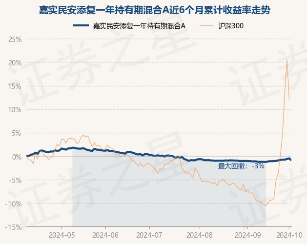 证券之星消息,10月9日,嘉实民安添复一年持有期混合A最新单位净值为1.0106元,累计净值为1.0106元,较前一交易日下跌0.37%。历史数据显示该基金近1个月上涨0.38%,近3个月下跌0.98%,近6个月下跌0.86%,近1年上涨0.34%。该基金近6个月的累计收益率走势如下图: