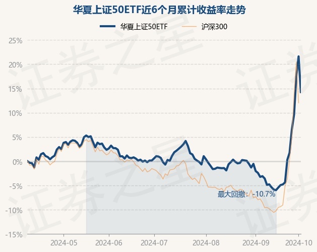证券之星消息,10月9日,华夏上证50ETF最新单位净值为2.7862元,累计净值为4.0821元,较前一交易日下跌6.05%。历史数据显示该基金近1个月上涨20.11%,近3个月上涨13.95%,近6个月上涨14.25%,近1年上涨9.87%。该基金近6个月的累计收益率走势如下图: