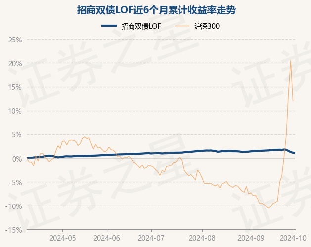 证券之星消息,10月9日,招商双债LOF最新单位净值为1.5585元,累计净值为1.6975元,较前一交易日下跌0.12%。历史数据显示该基金近1个月下跌0.53%,近3个月上涨0.0%,近6个月上涨1.02%,近1年上涨3.98%。该基金近6个月的累计收益率走势如下图:
