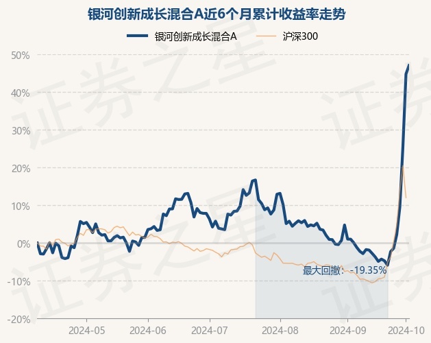 证券之星消息,10月9日,银河创新成长混合A最新单位净值为5.6562元,累计净值为5.6562元,较前一交易日上涨1.57%。历史数据显示该基金近1个月上涨51.31%,近3个月上涨36.59%,近6个月上涨47.06%,近1年上涨27.12%。该基金近6个月的累计收益率走势如下图:
