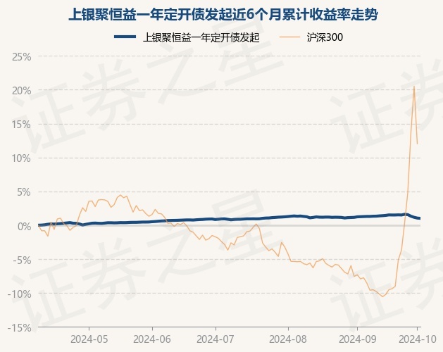 证券之星消息,10月9日,上银聚恒益一年定开债发起最新单位净值为1.0039元,累计净值为1.0601元,较前一交易日下跌0.04%。历史数据显示该基金近1个月上涨1.3%,近3个月上涨0.16%,近6个月上涨1.02%,近1年上涨2.81%。该基金近6个月的累计收益率走势如下图: