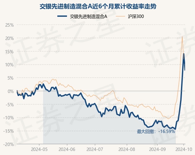 证券之星消息,10月9日,交银先进制造混合A最新单位净值为3.6605元,累计净值为5.1115元,较前一交易日下跌5.33%。历史数据显示该基金近1个月上涨25.02%,近3个月上涨17.77%,近6个月上涨7.91%,近1年下跌3.67%。该基金近6个月的累计收益率走势如下图: