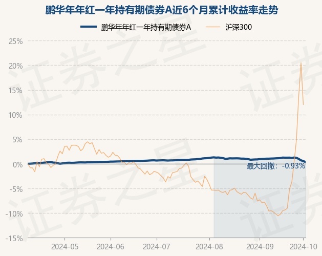证券之星消息,10月9日,鹏华年年红一年持有期债券A最新单位净值为1.1397元,累计净值为1.1397元,较前一交易日下跌0.18%。历史数据显示该基金近1个月下跌0.7%,近3个月下跌0.32%,近6个月上涨0.36%,近1年上涨2.56%。该基金近6个月的累计收益率走势如下图: