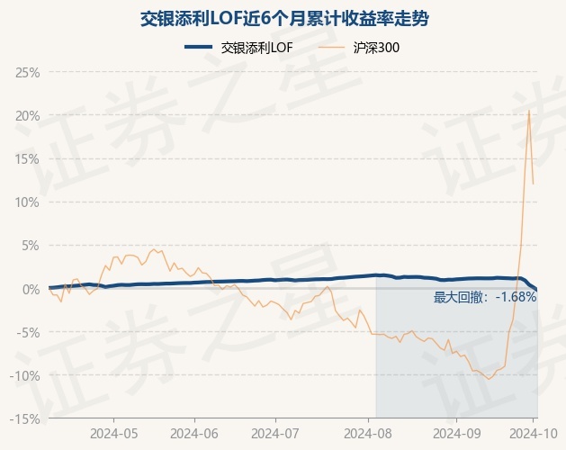 证券之星消息,10月9日,交银添利LOF最新单位净值为1.1392元,累计净值为1.8092元,较前一交易日下跌0.32%。历史数据显示该基金近1个月下跌1.33%,近3个月下跌1.13%,近6个月下跌0.23%,近1年上涨2.21%。该基金近6个月的累计收益率走势如下图: