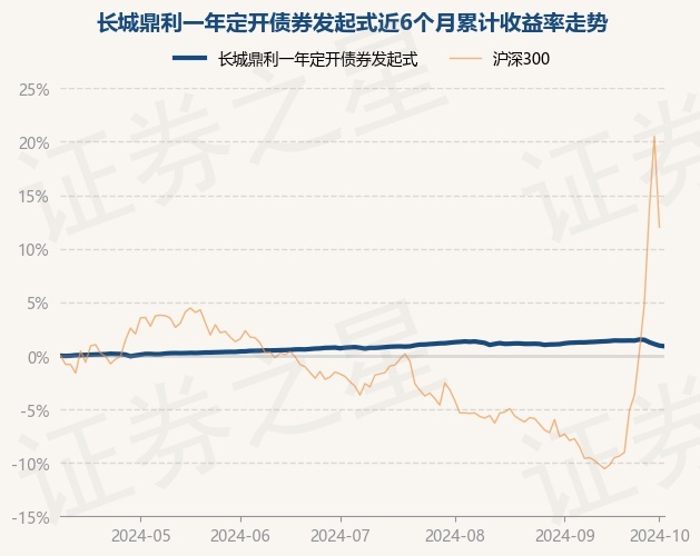 证券之星消息,10月9日,长城鼎利一年定开债券发起式最新单位净值为1.0013元,累计净值为1.0618元,较前一交易日下跌0.06%。历史数据显示该基金近1个月下跌0.38%,近3个月上涨0.15%,近6个月上涨0.89%,近1年上涨3.69%。该基金近6个月的累计收益率走势如下图: