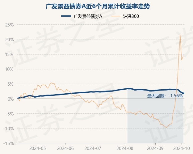 证券之星消息,10月10日,广发景益债券A最新单位净值为1.0762元,累计净值为1.0762元,较前一交易日上涨0.15%。历史数据显示该基金近1个月下跌1.0%,近3个月下跌0.41%,近6个月上涨1.88%,近1年上涨5.02%。该基金近6个月的累计收益率走势如下图: