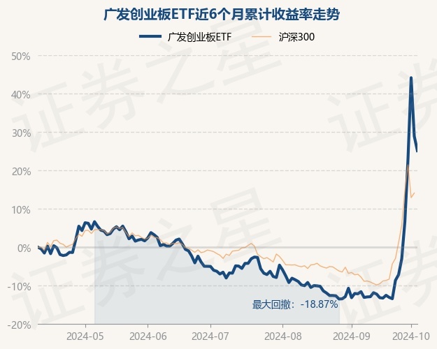 证券之星消息,10月10日,广发创业板ETF最新单位净值为1.3255元,累计净值为1.3255元,较前一交易日下跌2.93%。历史数据显示该基金近1个月上涨43.64%,近3个月上涨34.2%,近6个月上涨25.15%,近1年上涨12.52%。该基金近6个月的累计收益率走势如下图:
