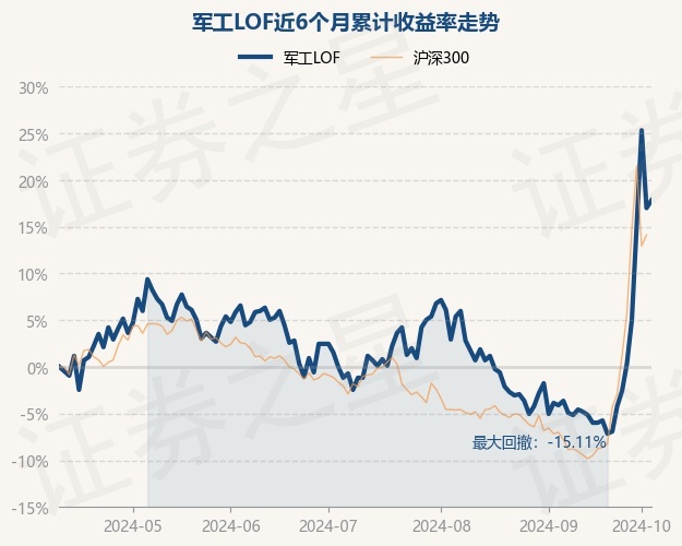 证券之星消息,10月10日,军工LOF最新单位净值为1.005元,累计净值为1.715元,较前一交易日上涨0.7%。历史数据显示该基金近1个月上涨23.46%,近3个月上涨19.22%,近6个月上涨17.82%,近1年上涨1.01%。该基金近6个月的累计收益率走势如下图: