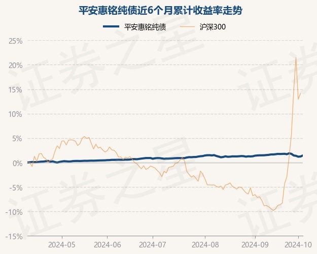证券之星消息,10月10日,平安惠铭纯债最新单位净值为1.0899元,累计净值为1.1809元,较前一交易日上涨0.2%。历史数据显示该基金近1个月下跌0.13%,近3个月上涨0.63%,近6个月上涨1.43%,近1年上涨4.33%。该基金近6个月的累计收益率走势如下图: