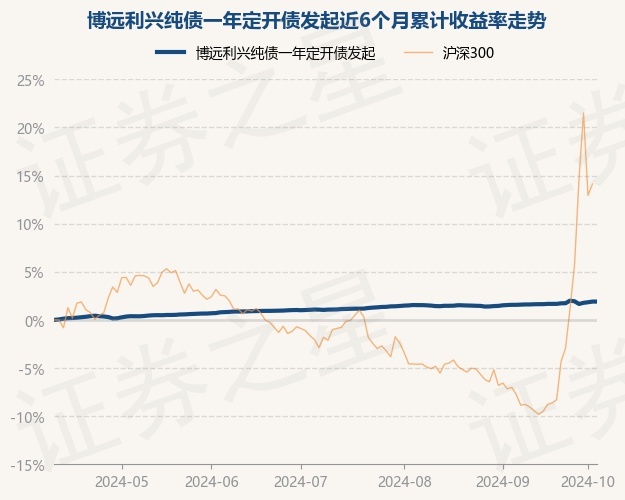 证券之星消息,10月10日,博远利兴纯债一年定开债发起最新单位净值为1.0249元,累计净值为1.072元,较前一交易日上涨0.0%。历史数据显示该基金近1个月上涨0.43%,近3个月上涨0.96%,近6个月上涨2.04%,近1年上涨4.46%。该基金近6个月的累计收益率走势如下图: