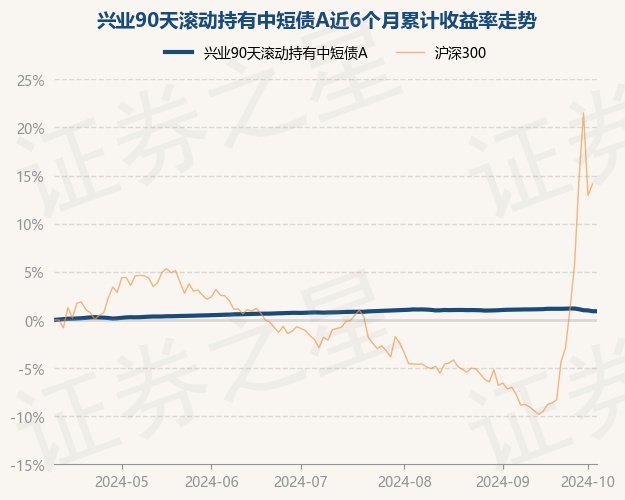 证券之星消息,10月10日,兴业90天滚动持有中短债A最新单位净值为1.0844元,累计净值为1.0844元,较前一交易日上涨0.0%。历史数据显示该基金近1个月下跌0.16%,近3个月上涨0.15%,近6个月上涨0.93%,近1年上涨2.75%。该基金近6个月的累计收益率走势如下图: