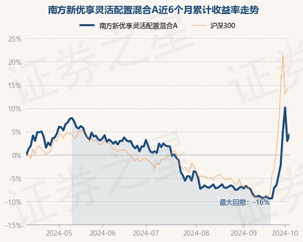 证券之星消息,10月10日,南方新优享灵活配置混合A最新单位净值为3.2494元,累计净值为3.2494元,较前一交易日上涨1.35%。历史数据显示该基金近1个月上涨14.62%,近3个月上涨2.65%,近6个月上涨4.35%,近1年上涨8.57%。该基金近6个月的累计收益率走势如下图: