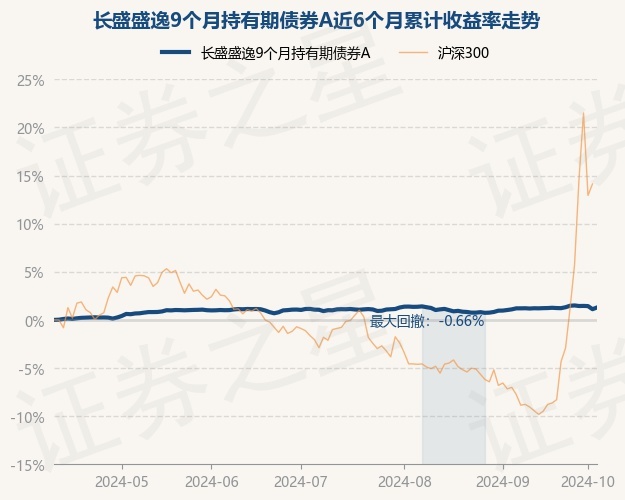 证券之星消息,10月10日,长盛盛逸9个月持有期债券A最新单位净值为1.0455元,累计净值为1.0564元,较前一交易日上涨0.17%。历史数据显示该基金近1个月上涨0.11%,近3个月上涨0.29%,近6个月上涨1.29%,近1年上涨4.06%。该基金近6个月的累计收益率走势如下图:
