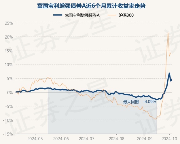 证券之星消息,10月10日,富国宝利增强债券A最新单位净值为1.2862元,累计净值为1.3262元,较前一交易日上涨0.45%。历史数据显示该基金近1个月上涨6.83%,近3个月上涨4.32%,近6个月上涨4.53%,近1年上涨4.17%。该基金近6个月的累计收益率走势如下图:
