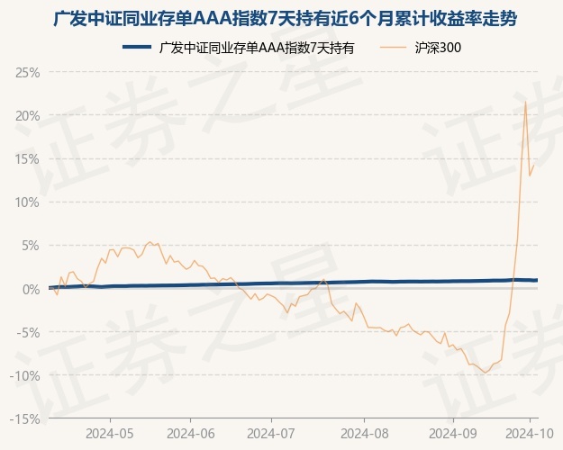证券之星消息,10月10日,广发中证同业存单AAA指数7天持有最新单位净值为1.053元,累计净值为1.053元,较前一交易日上涨0.03%。历史数据显示该基金近1个月上涨0.09%,近3个月上涨0.33%,近6个月上涨0.89%,近1年上涨2.2%。该基金近6个月的累计收益率走势如下图: