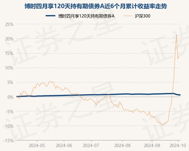博时四月享120天持有期债券A为债券型-中短债基金,根据最新一期基金季报显示,该基金资产配置:无股票类资产,债券占净值比105.06%,现金占净值比0.12%。