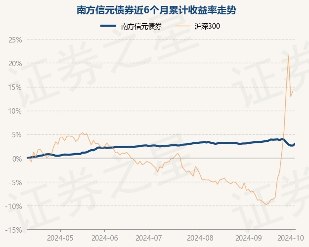 证券之星消息,10月10日,南方信元债券最新单位净值为1.0558元,累计净值为1.102元,较前一交易日上涨0.39%。历史数据显示该基金近1个月下跌0.38%,近3个月上涨0.49%,近6个月上涨3.04%,近1年上涨6.03%。该基金近6个月的累计收益率走势如下图: