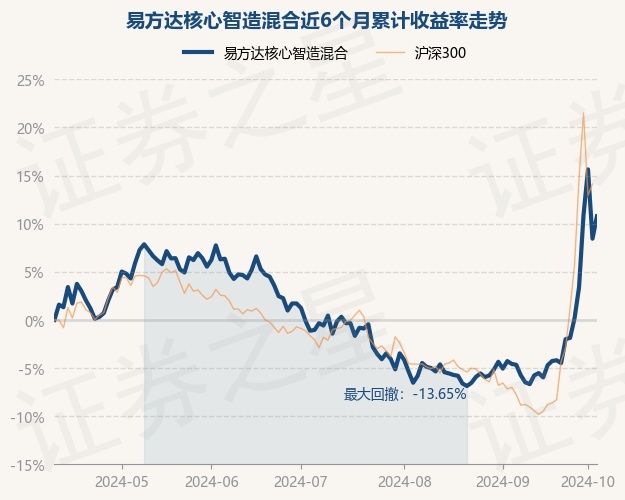 证券之星消息,10月10日,易方达核心智造混合最新单位净值为0.9083元,累计净值为0.9083元,较前一交易日上涨2.15%。历史数据显示该基金近1个月上涨18.69%,近3个月上涨12.37%,近6个月上涨10.77%,近1年上涨18.04%。该基金近6个月的累计收益率走势如下图: