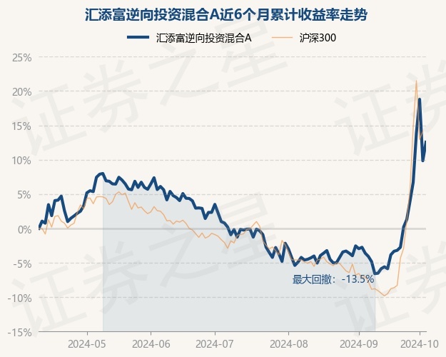 证券之星消息,10月10日,汇添富逆向投资混合A最新单位净值为3.282元,累计净值为3.851元,较前一交易日上涨2.47%。历史数据显示该基金近1个月上涨20.4%,近3个月上涨14.0%,近6个月上涨12.55%,近1年上涨13.17%。该基金近6个月的累计收益率走势如下图: